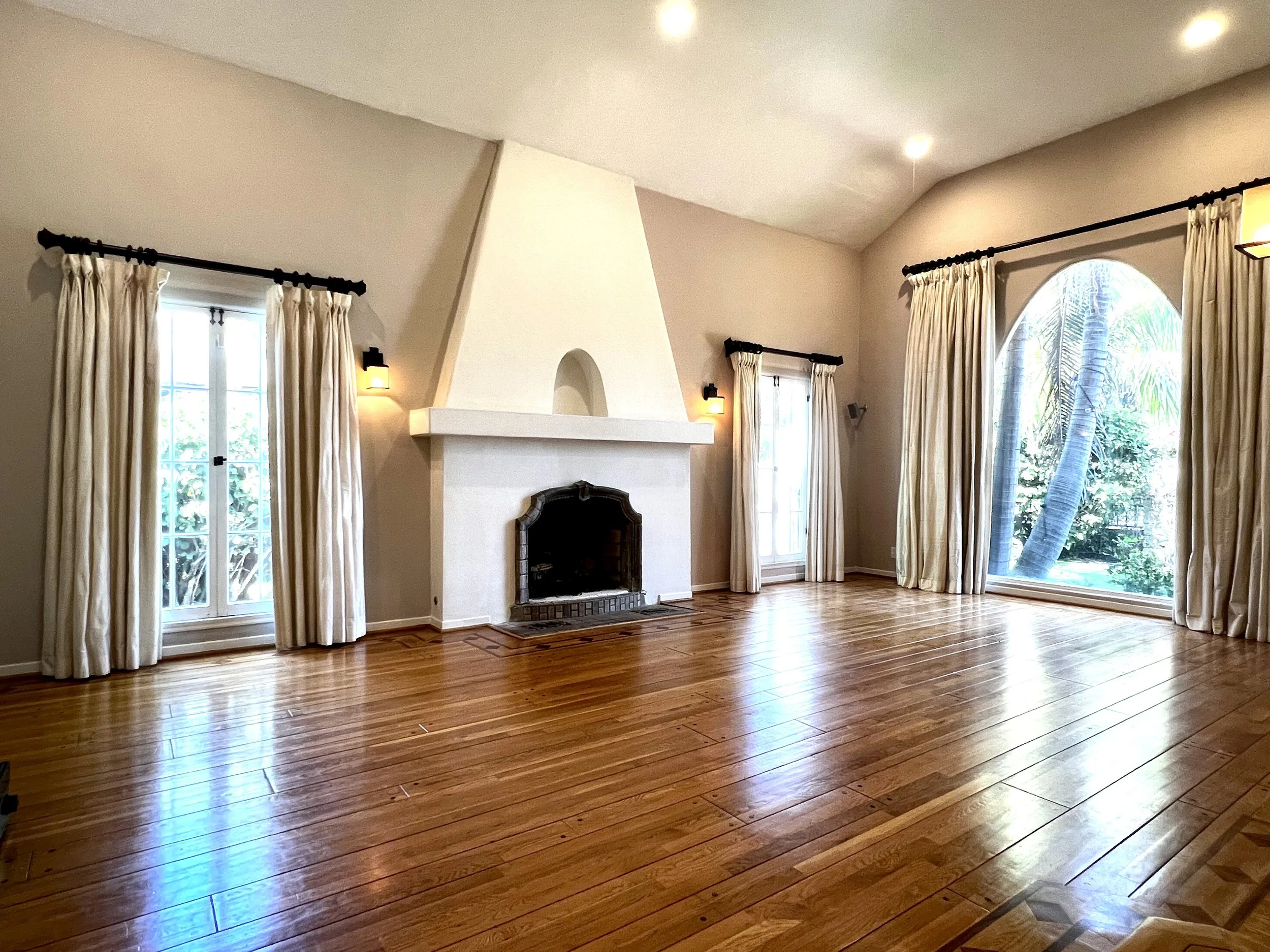 This classic Spanish home is situated on one of the most desirable streets in Beverly Grove, just steps away from the area's top-rated restaurants, shops, and the Beverly Center. With 4 spacious bedrooms( 2on Suite) and 3.5 bathrooms, this Spanish gem features a gorgeous 20-foot coved ceiling and hardwood floors throughout. The living room is equipped with a surround sound system and a cozy fireplace, creating the perfect space for relaxation and entertainment. The large renovated cook's kitchen is a chef's dream, featuring brushed granite countertops, an island, stainless steel appliances, ample cabinet space, and a breakfast area. The dining room opens up to a beautiful outdoor entertaining space with a built-in fire-pit and speakers, perfect for hosting gatherings. The enormous primary suite boasts a vaulted ceiling, double vanity, soaking tub, and double walk-in closets with built-ins. The bathroom is wired for a flat panel TV and features speakers in the shower. French doors lead to a private outdoor space, allowing for a tranquil and peaceful retreat. The property is fully gated with bougainvillea and hedges, providing ample privacy. The lush and professionally landscaped yard features artificial grass and charming fruit trees. Additionally, the property includes a detached 2-car garage with direct street access and plenty of street parking. Overall, this unique and beautiful property offers the perfect combination of luxury, comfort, and convenience.